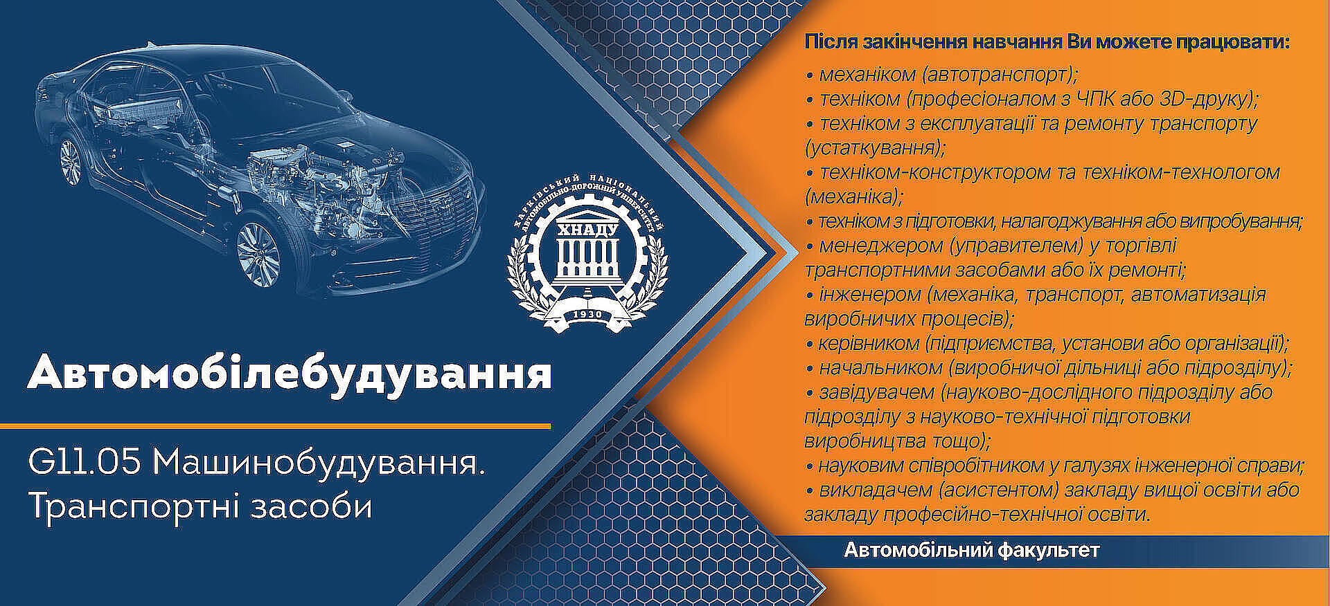 Також за бажанням студенти автомобільного факультету можуть навчитися на другій спеціальності за вибором: