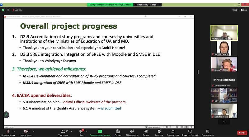 Окрему подяку було висловлено проф. Андрію Гнатову за підготовку звіту щодо акредитації освітніх програм, залучених до реалізації проєкту, а також Володимиру Казимиру за підготовку звіту про інтеграцію платформи SREE.