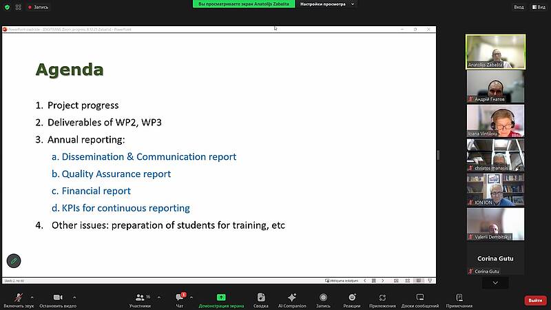 Порядок денний зустрічі було зосереджено на обговоренні поточного прогресу проєкту та досягнутих результатів. У межах звітування Анатолій Забашта відзначив успішне виконання результатів 2.3 та 3.3.