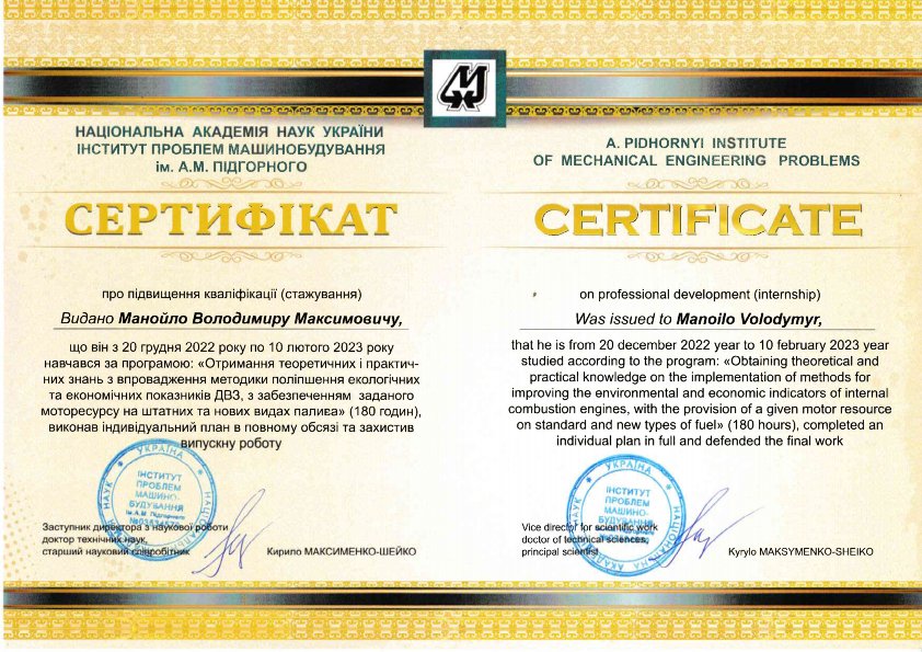 Докторську дисертацію на тему "Підвищення ефективності експлуатації засобів транспорту та їх функціональних систем, конвертованих для роботи на природному газі" захистив в 2020 р.