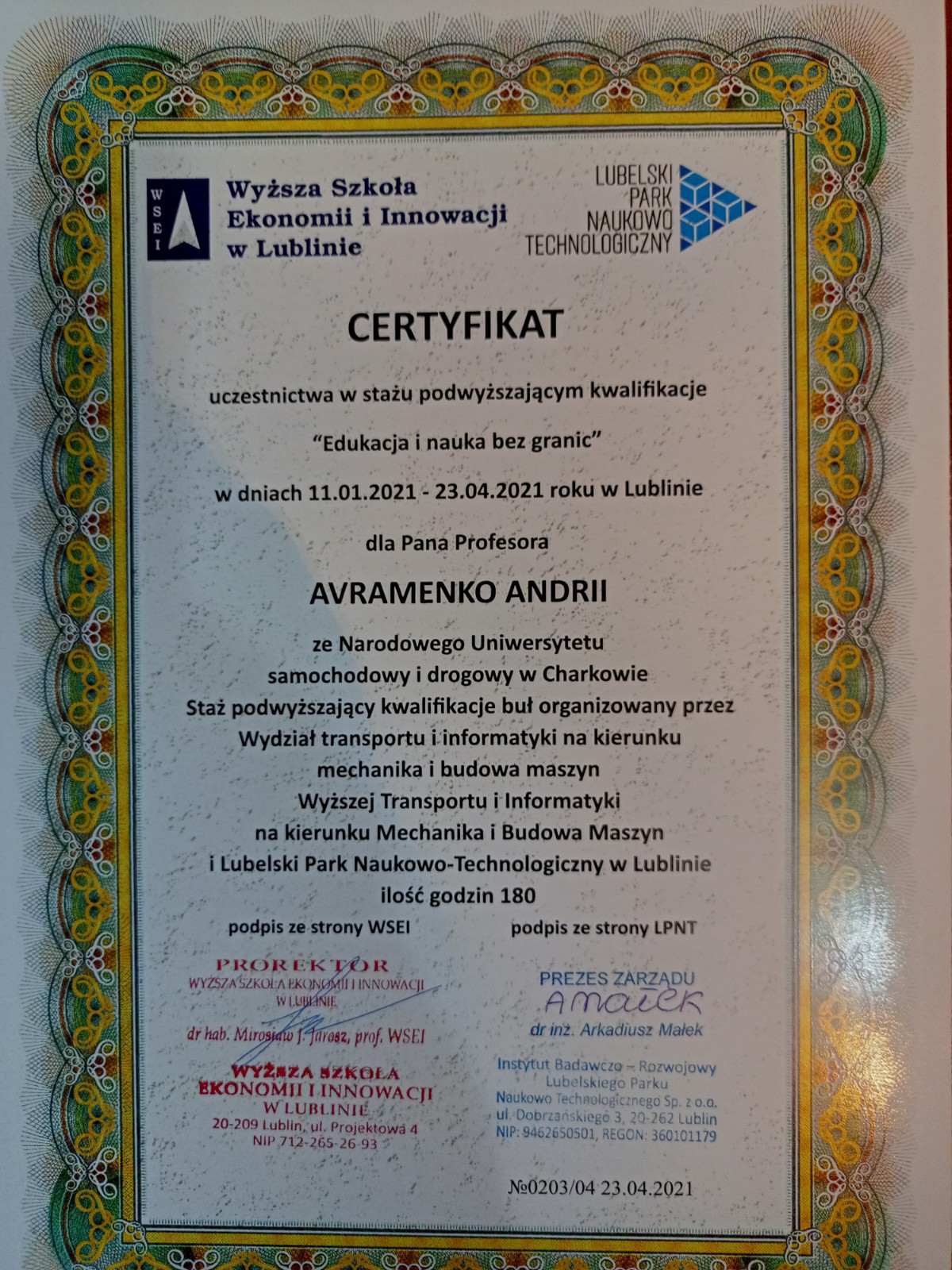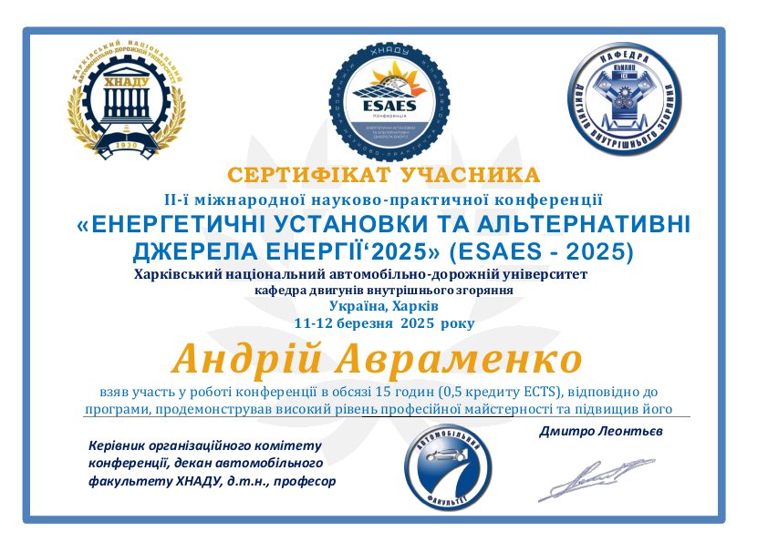 Докторську дисертацію на тему "Наукові основи розв'язання спряжених задач термогазодинаміки при моделюванні гомогенного процесу дизельного двигуна" захистив в 2020 р.