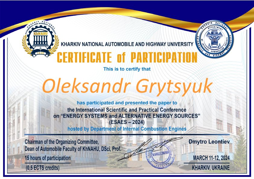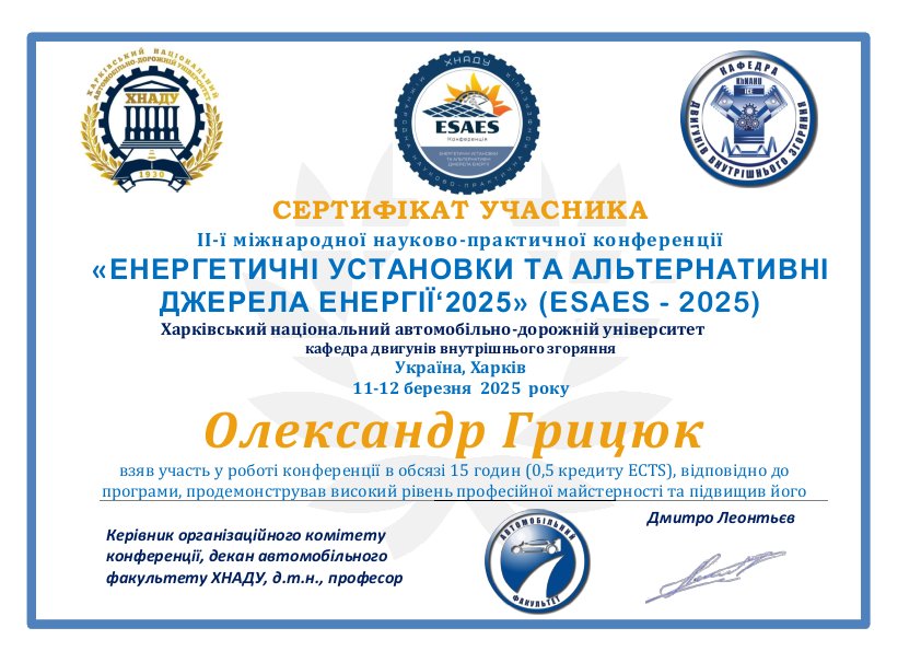 Докторська дисертація на тему "Теоретические основы и практические методы создания высокооборотного малолитражного дизеля многоцелевого назначения" захищена у 2010 р.