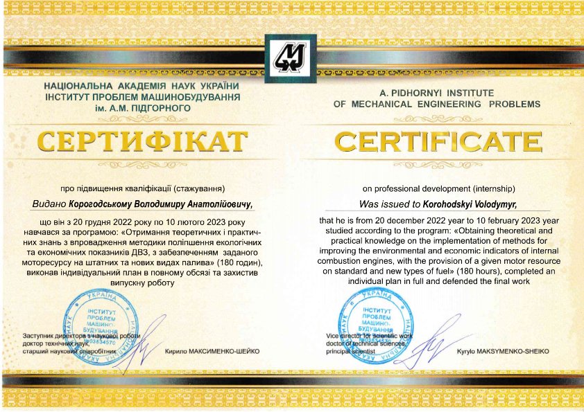 Напрямок наукової діяльності: теплові двигуни та енергетичні установки.