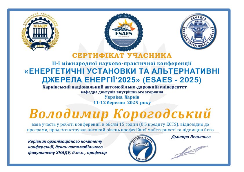 У 2018 році захистив докторську дисертацію на тему "Наукові основи перспективних робочих процесів двигунів з іскровим запалюванням при внутрішньому сумішоутворенні" за спеціальністю 05.05.03 – двигуни та енергетичні установки в Харківському національному автомобільно-дорожньому університеті.