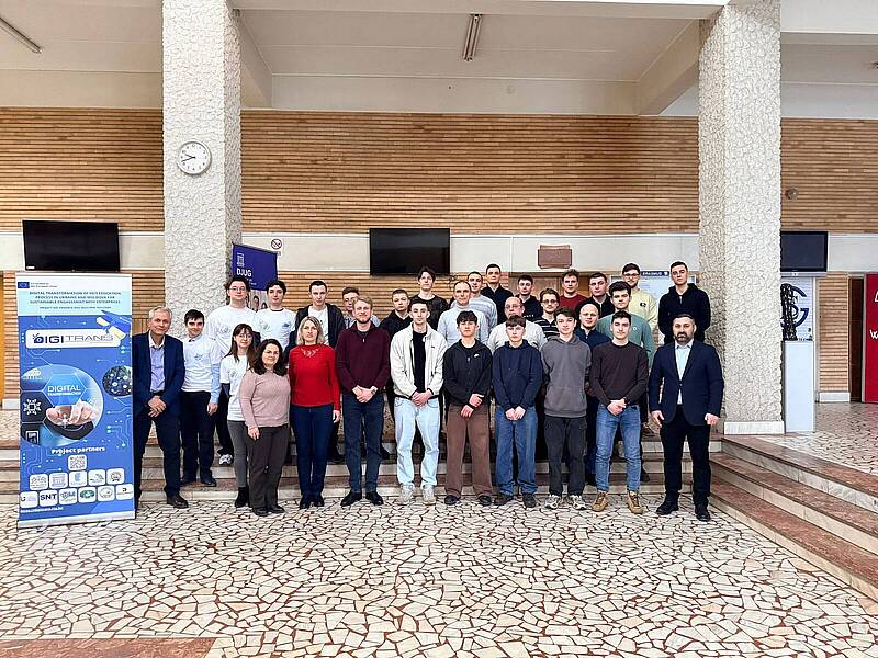 З 9 по 13 лютого 2026 року в Університету Нижнього Дунаю у м. Галац (Румунія) відбувся тренінг для студентів “School for the training of students in Galati” у рамках проєкту ERASMUS+ “Digital transformation of HEIs education process in Ukraine and Moldova for sustainable engagement with enterprises (DIGITRANS)”.