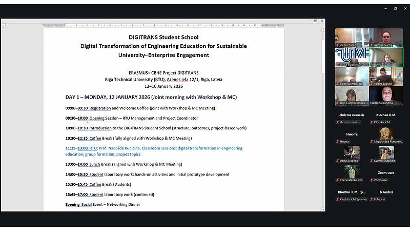 22 грудня, відбулася підготовча зустріч до заходу «Студентська школа в Ризі» в межах реалізації проєкту Erasmus+ «Цифрова трансформація освітнього процесу вищих навчальних закладів в Україні та Молдові для сталої взаємодії з підприємствами» (Digital transformation of HEIs education process in Ukraine and Moldova for sustainable engagement with enterprises).