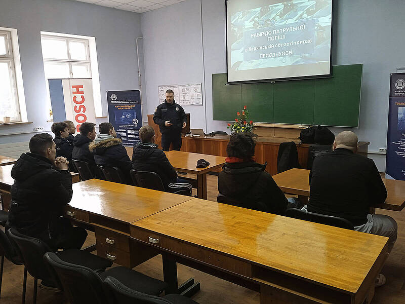 Наприкінці грудня кафедра інжинірингу систем автомобільного транспорту провела для студентів спеціальностей J8 "Автомобільний транспорт" та G11.05/J8 "Машинобудування. Транспорт/Автомобільний транспорт" не звичайний і дуже цікавий захід «ЗУСТРІЧ З ПАТРУЛЬНОЮ ПОЛІЦІЄЮ ХАРКІВСЬКОЇ ОБЛАСТІ».